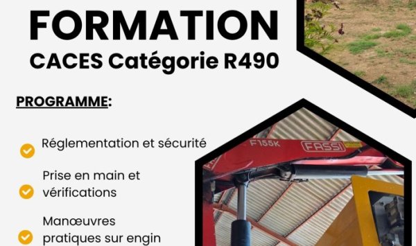 📅 Du 27 au 29 octobre 2025 📍 CFM Sourzac 💪 Obtenez votre certification CACES R490 et maîtrisez la conduite en toute sécurité des grues auxiliaires de chargement. Cette for...